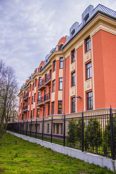 Продолжает концепцию малоэтажного комплекса в стиле неоклассицизма. Камерный дом на 16 квартир и подземной автостоянкой на 28 парковочных мест. Закрытый охраняемый внутренний двор. Заканчивается благоустройство территории в соответствии с авторским дизайн-проектом. Дом сдан, собственность, идет передача ключей. В продаже осталось 0 квартиры площадью от 114 м2.